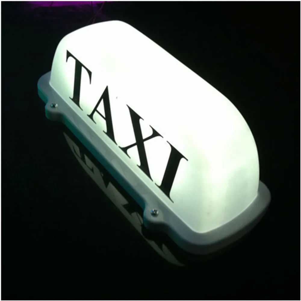 Small Waterproof & Dual Bulb White Taxi Top Light (10.5”X4”X4.4”) with Magnetic Mounting Base & 10Ft 12V Cigarette Lighter Power Cable